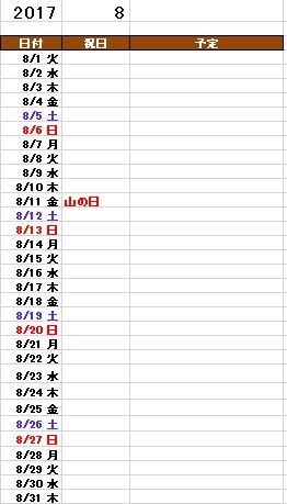 参加数:4名 @ 関数を使用して月初めの1日が何曜日か判断して第1週の日付を表示後に |