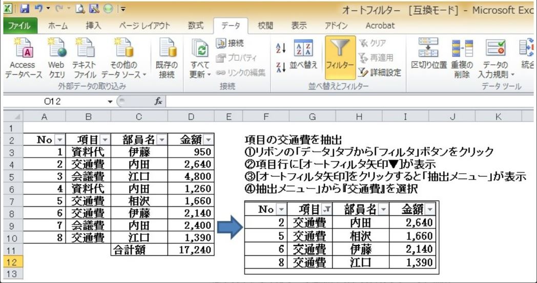 Excel「オ−トフィルタ−機能」のオプションについて学ぶ |
